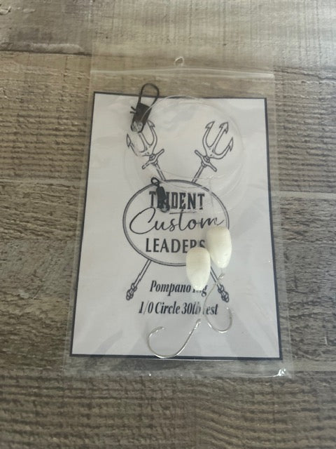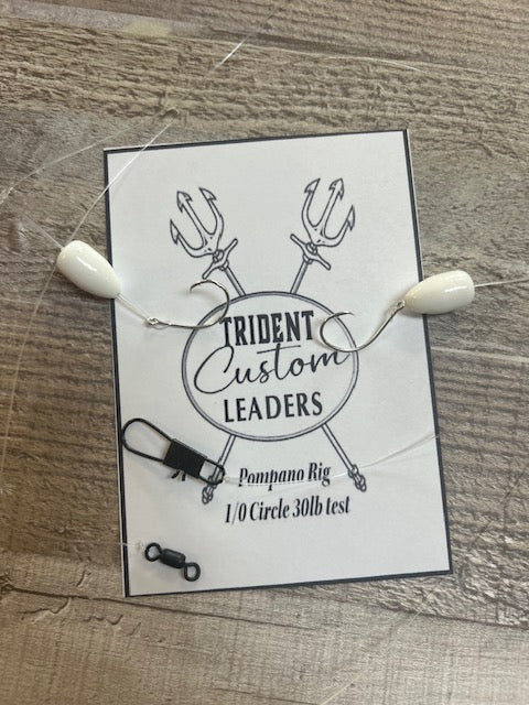 Pompano rig made with 30lb Ande monofilament, 1/0 circle hook, and white crab proof floats.