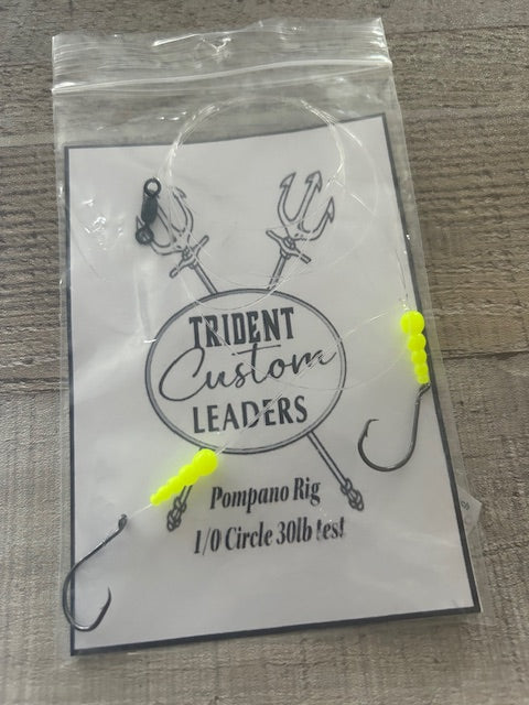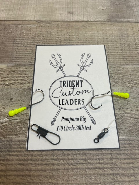 Pompano rig made with 30lb Ande monofilament, 1/0 circle hook, and chartreuse stacked beads.